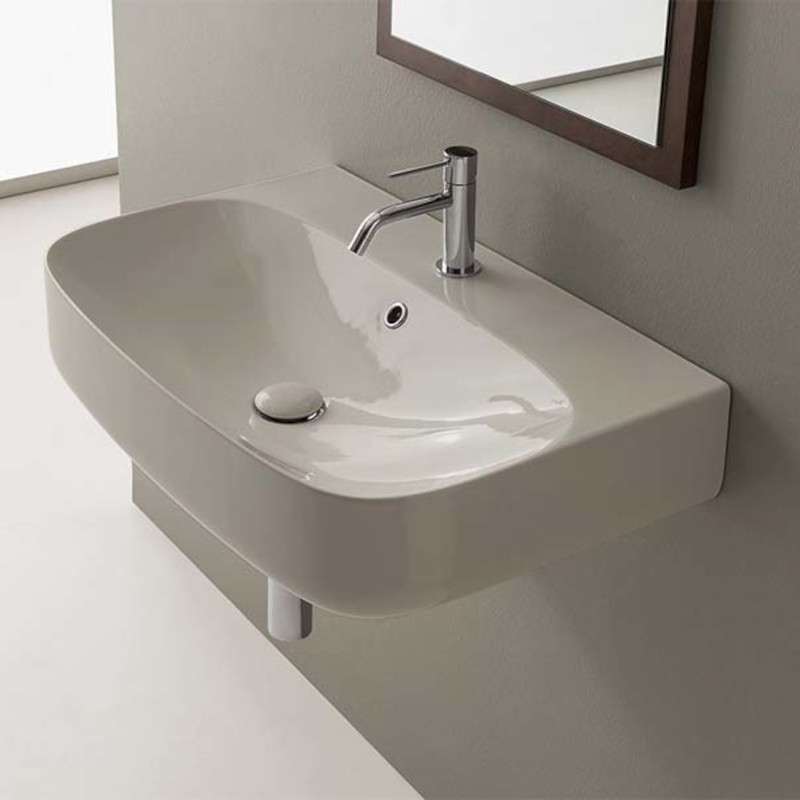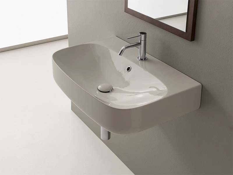 SCARABEO MOON 5509 Раковина накладная или подвесная с одним отверстием под смеситель, с сливом - переливом. Размеры: 90x45x15h см. Настенные крепления входят в комплект. Цвет Pearl.