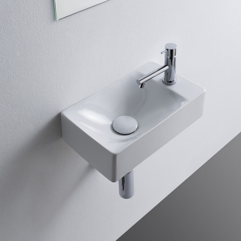 SCARABEO SOFT 1502 Раковина накладная или подвесная с одним отверстием под смеситель справа, без пробки перелива. Настенные крепления входят в комплект. Размеры: 38x22x10h см. цвет White.