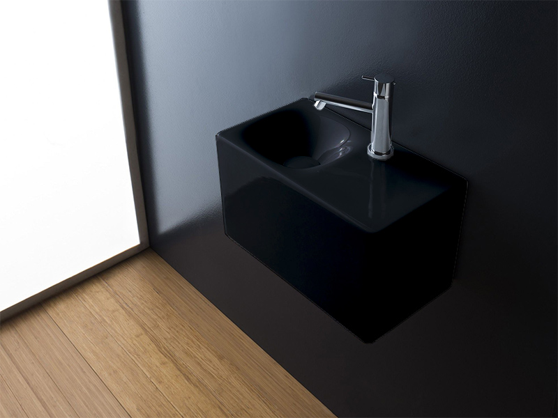 SCARABEO CUBE 1522 Раковина накладная или подвесная в форме куба, без перелива, с одним отверстием под смеситель справа. Настенные крепления входят в комплект. Размеры: 42x24x24 см. цвет Ardesia. Представленная модель раковины существует в различных цветовых решениях.
