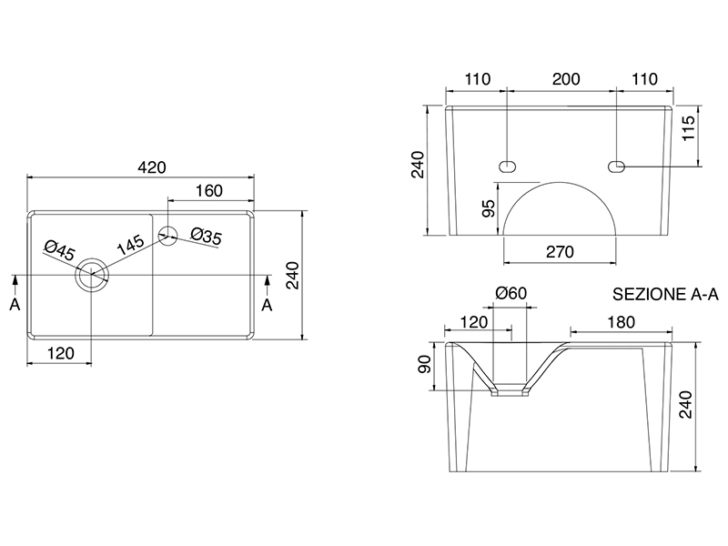 Размеры раковины составляют 42 см в ширину, 24 см в высоту и 24 см в глубину, что делает её компактной и удобной в использовании. Она идеально впишется в любое пространство, даже в небольшую ванную комнату, позволяя сэкономить место, оставаясь при этом стильным элементом декора.
