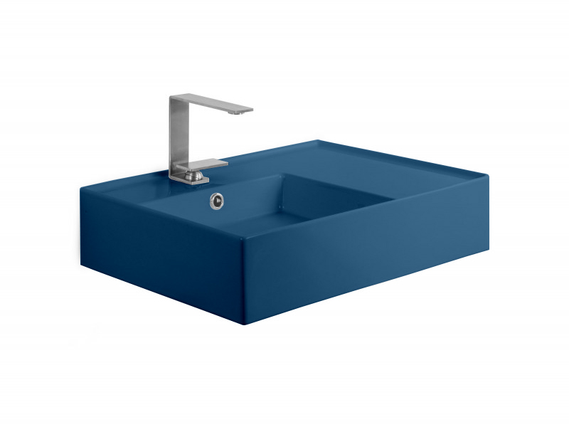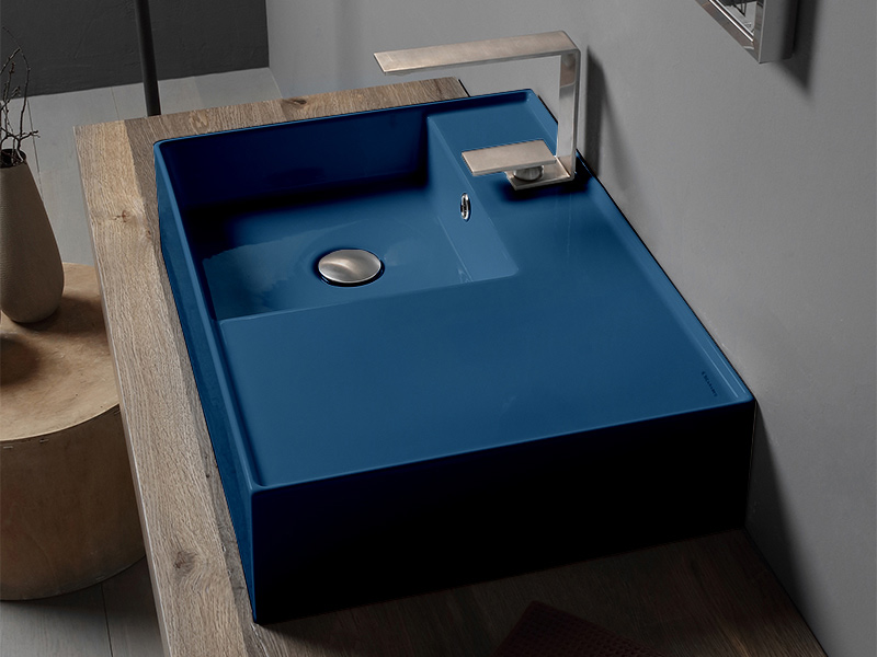 SCARABEO TEOREMA 2.0 5114 Раковина накладная или подвесная чаша слева с одним отверстием под смеситель, с сливом - переливом. Размеры: 60x44x14h см. Настенные крепления входят в комплект. Цвет Ocean.