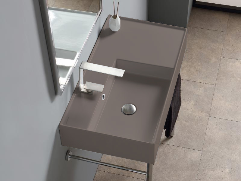 SCARABEO TEOREMA 2.0 5115 Раковина накладная или подвесная чаша слева с одним отверстием под смеситель, с сливом - переливом. Размеры: 80x44x14h см. Настенные крепления входят в комплект. Цвет Sand.