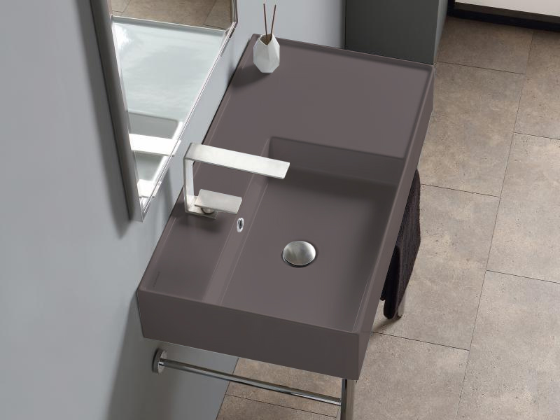 SCARABEO TEOREMA 2.0 5115 Раковина накладная или подвесная чаша слева с одним отверстием под смеситель, с сливом - переливом. Размеры: 80x44x14h см. Настенные крепления входят в комплект. Цвет Tobacco.