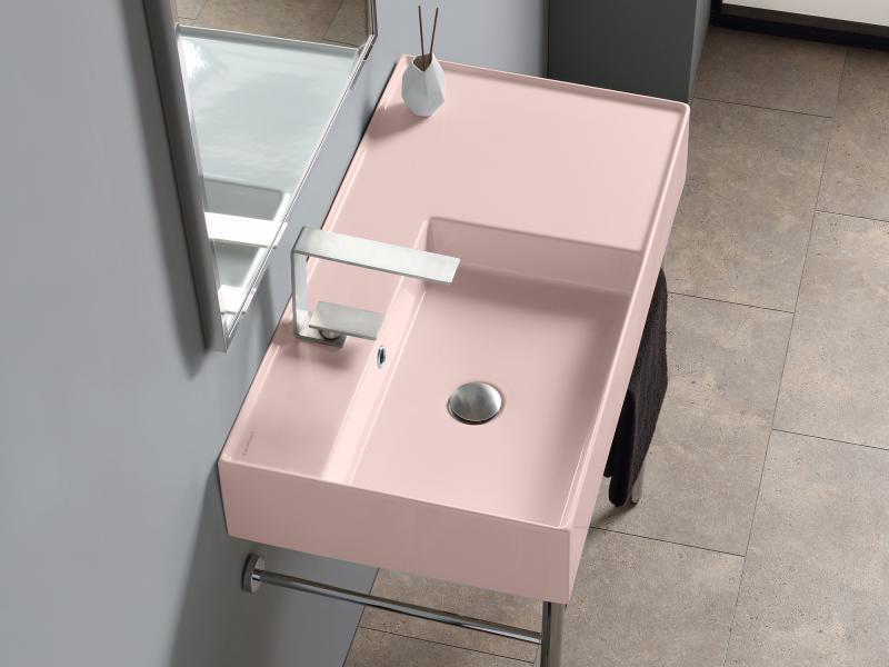 SCARABEO TEOREMA 2.0 5115 Раковина накладная или подвесная чаша слева с одним отверстием под смеситель, с сливом - переливом. Размеры: 80x44x14h см. Настенные крепления входят в комплект. Цвет Antiqua Pink.