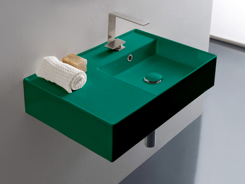 SCARABEO TEOREMA 2.0 5117 Раковина накладная или подвесная чаша справа, одно отверстие под смеситель, с сливом - переливом. Размеры: 60x44x14h см. Настенные крепления и перелив входят в комплект. Цвет Glossy Musk.