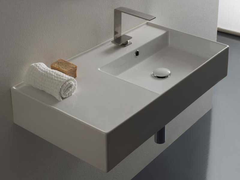 SCARABEO TEOREMA 2.0 5118 Раковина накладная или подвесная чаша справа, одно отверстие под смеситель, с сливом - переливом. Размеры: 80x44x14h см. Настенные крепления входят в комплект. Цвет White.