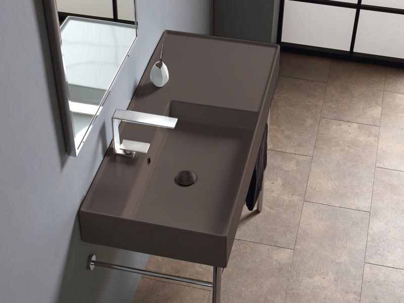 SCARABEO TEOREMA 2.0 5119 Раковина накладная или подвесная чаша слева, одно отверстие под смеситель, с сливом - переливом. Размеры: 101x46x14h см. Настенные крепления входят в комплект. Цвет Tobacco.
