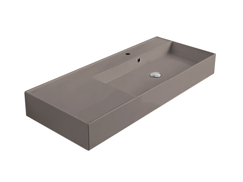 SCARABEO TEOREMA 2.0 5120 Раковина накладная или подвесная чаша справа, одно отверстие под смеситель, с сливом - переливом. Размеры: 101x46x14h см. Настенные крепления входят в комплект. Цвет Sand.