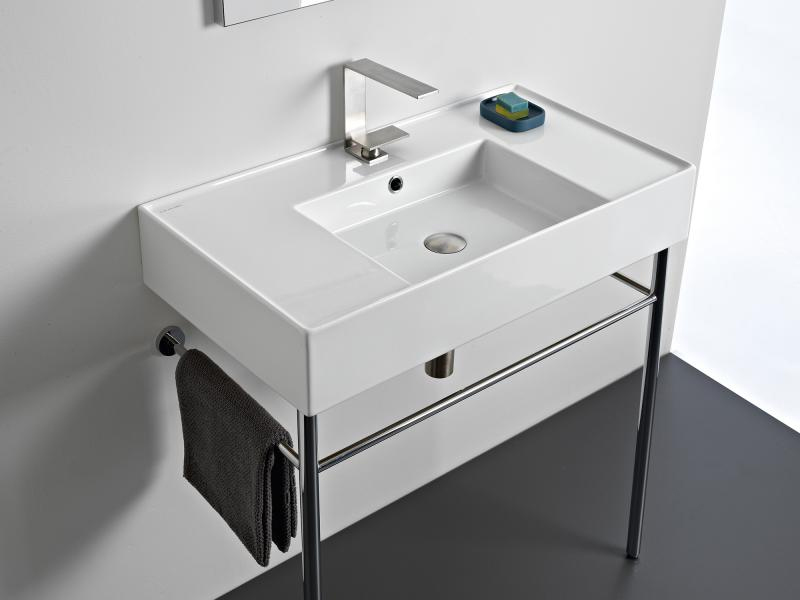 SCARABEO TEOREMA 2.0 DOUBLE SHELF 5123 Раковина накладная или подвесная чаша посередине, одно отверстие под смеситель, с сливом - переливом. Размеры: 81x44x14h см. Настенные крепления входят в комплект. Цвет White.