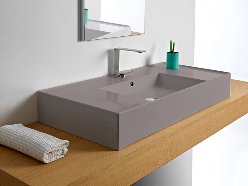 SCARABEO TEOREMA 2.0 DOUBLE SHELF 5124 Раковина накладная или подвесная чаша посередине, одно отверстие под смеситель, с сливом - переливом. Размеры: 101x46x14h см. Настенные крепления входят в комплект. Цвет Sand.