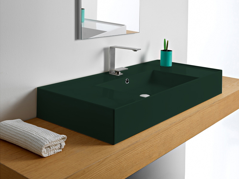 SCARABEO TEOREMA 2.0 DOUBLE SHELF 5124 Раковина накладная или подвесная чаша посередине, одно отверстие под смеситель, с сливом - переливом. Размеры: 101x46x14h см. Настенные крепления входят в комплект. Цвет Musk.