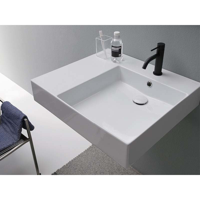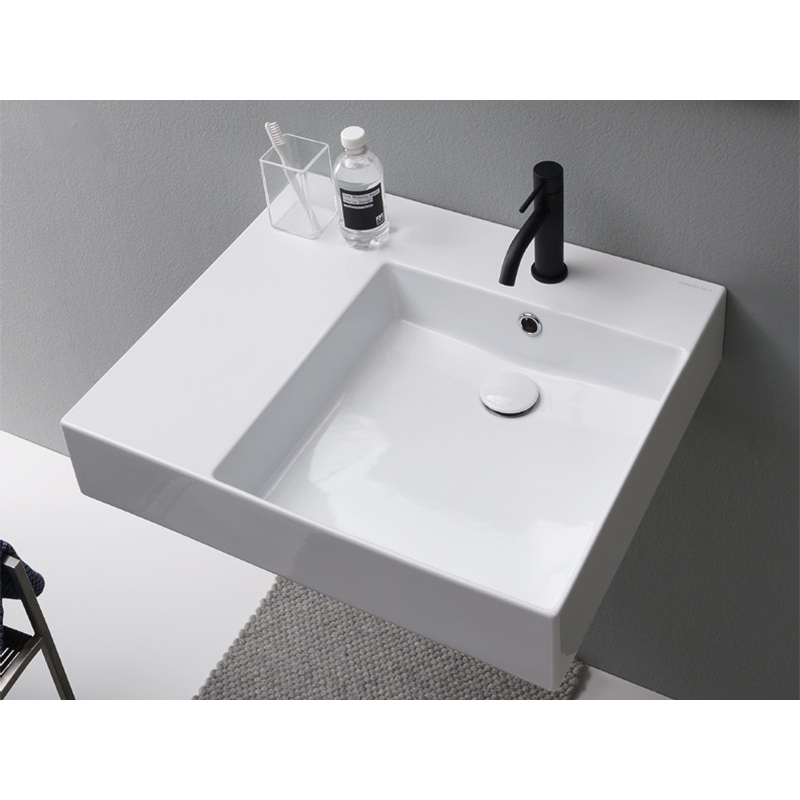 SCARABEO TEOREMA 2.0 PLUS 5148 Раковина накладная или подвесная с одним отверстием под смеситель, с переливом,чаша справа, Крепления входят в комплект. Цвет White. Подходит как для взрослых, так и для детей, а также и людям с ограниченными физическими возможностями.