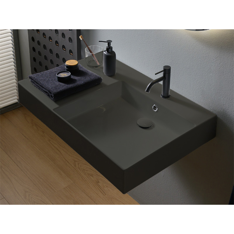 Глубокая чаша, расположенная справа с одним отверстием под смеситель, и наличие перелива обеспечивают удобство и функциональность при повседневном использовании. Керамическое исполнение гарантирует прочность и долговечность материала, что делает подвесную раковину надежным и практичным элементом ванной комнаты.