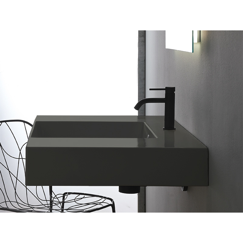 Раковина Scarabeo может быть как накладной, так и подвесной, в зависимости от ваших предпочтений и характеристик ванной комнаты. Чаша прямоугольной раковины расположена посередине с одним отверстием под смеситель, что делает ее использование удобным и практичным. Встроенный перелив обеспечивает дополнительный уровень защиты от переполнения и придает накладной раковине завершенный вид.