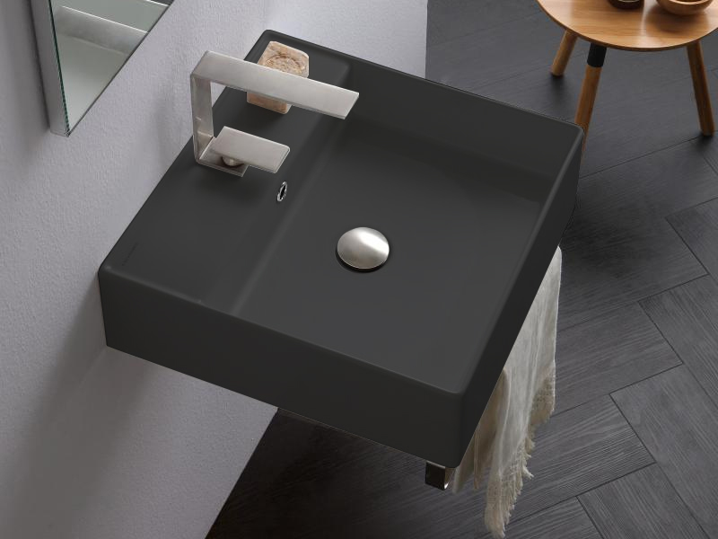 SCARABEO TEOREMA 2.0 5104 Раковина накладная или подвесная с одним отверстием под смеситель, с сливом - переливом. Размеры: 46x46x14,5h см. Рекомендуется установка на столешницу. Цвет Ardesia.