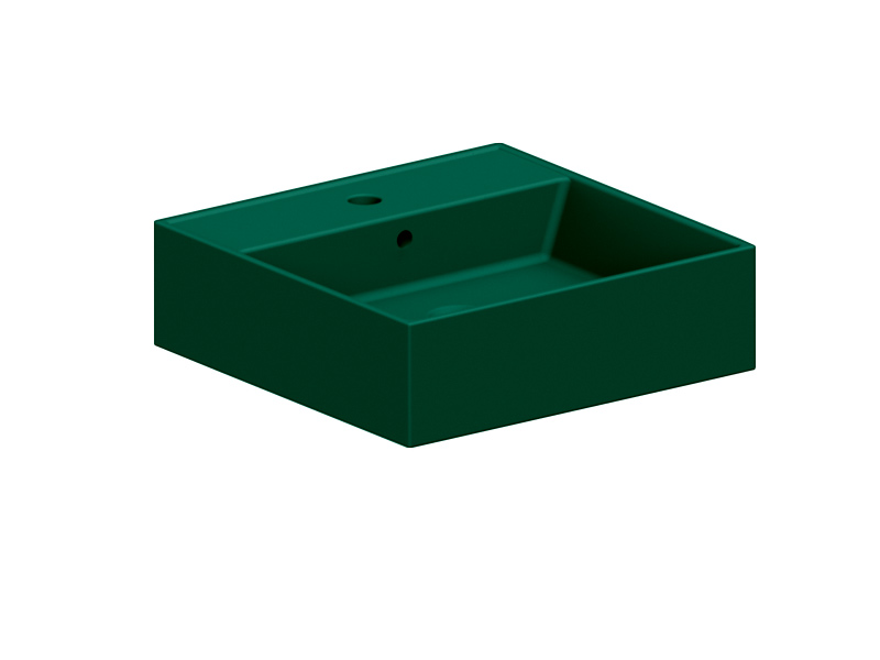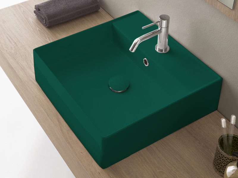 SCARABEO TEOREMA 2.0 5104 Раковина накладная или подвесная с одним отверстием под смеситель, с сливом - переливом. Настенные крепления и перелив входят в комплект. Размеры: 46x46x14,5h см. Цвет musk.
