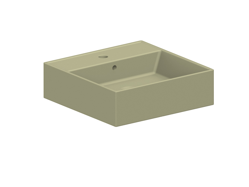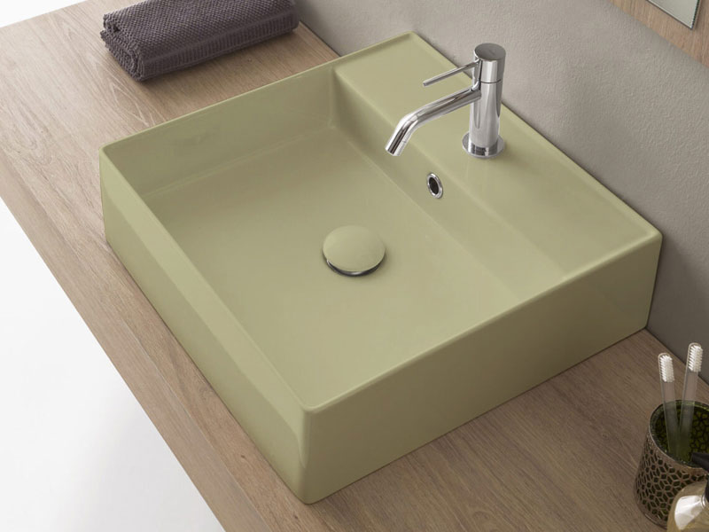 SCARABEO TEOREMA 2.0 5104 Раковина накладная или подвесная с одним отверстием под смеситель, с сливом - переливом. Настенные крепления и перелив входят в комплект. Размеры: 46x46x14,5h см. Цвет Matt lime.