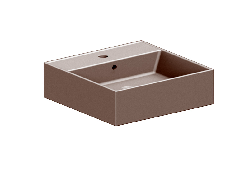 SCARABEO TEOREMA 2.0 5104 Раковина накладная или подвесная с одним отверстием под смеситель, с сливом - переливом. Настенные крепления и перелив входят в комплект. Размеры: 46x46x14,5h см. Цвет Glossy Tobacco.