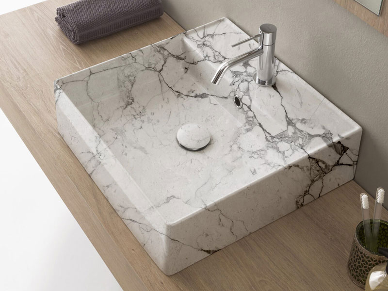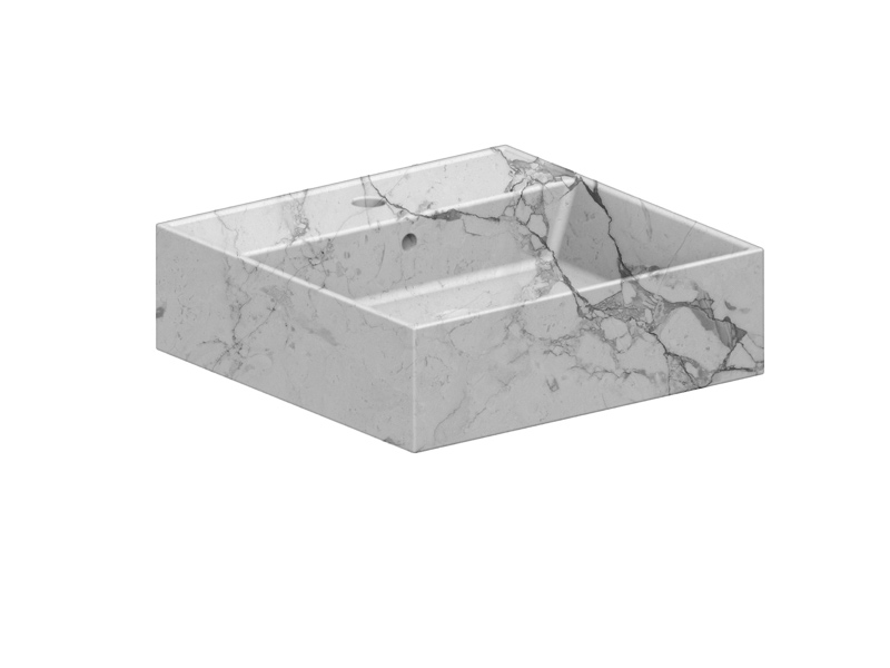 SCARABEO TEOREMA 2.0 5104 Раковина накладная или подвесная с одним отверстием под смеситель, с сливом - переливом. Настенные крепления и перелив входят в комплект. Размеры: 46x46x14,5h см. Цвет Marble White.