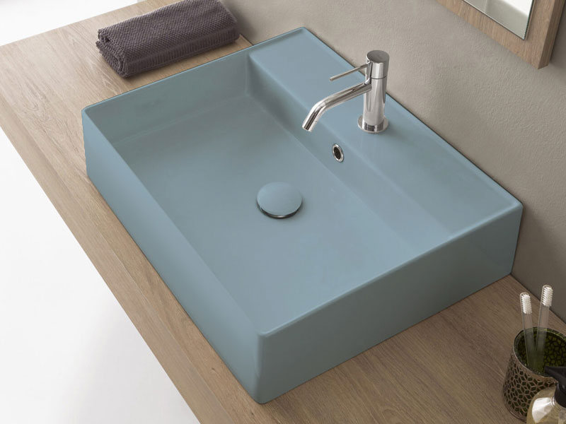 SCARABEO TEOREMA 2.0 5105 Раковина накладная или подвесная с одним отверстием под смеситель, с сливом - переливом. Настенные крепления и перелив входят в комплект. Размеры: 60x46x14,5h см. Цвет Matt Air.