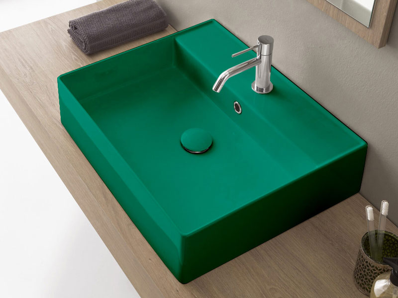 SCARABEO TEOREMA 2.0 5105 Раковина накладная или подвесная с одним отверстием под смеситель, с сливом - переливом. Настенные крепления и перелив входят в комплект. Размеры: 60x46x14,5h см. Цвет Glossy musk.