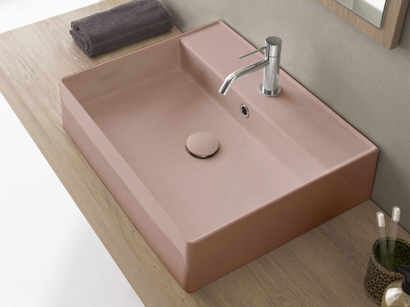 SCARABEO TEOREMA 2.0 5105 Раковина накладная или подвесная с одним отверстием под смеситель, с сливом - переливом. Настенные крепления и перелив входят в комплект. Размеры: 60x46x14,5h см. Цвет Glossy Antique pink.