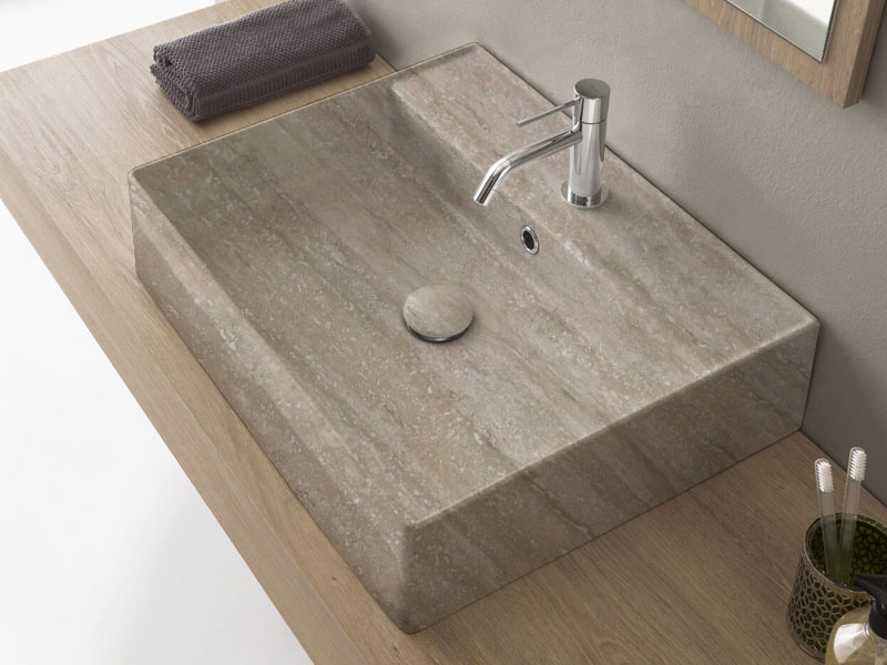 SCARABEO TEOREMA 2.0 5105 Раковина накладная или подвесная с одним отверстием под смеситель, с сливом - переливом. Настенные крепления и перелив входят в комплект. Размеры: 60x46x14,5h см. Цвет Travertine.