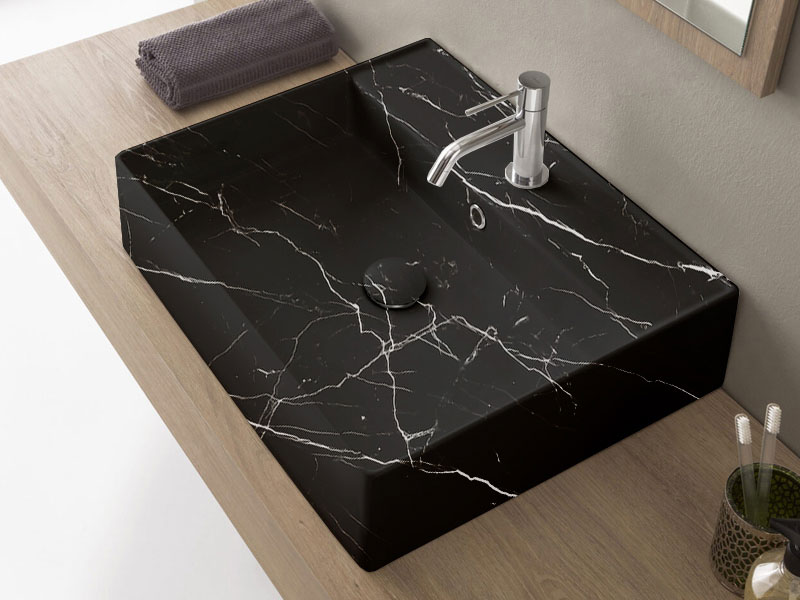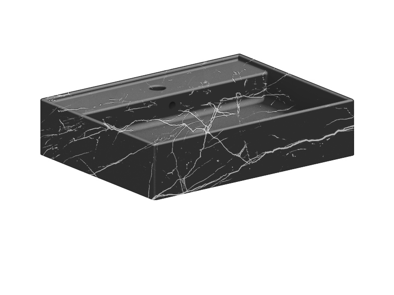 SCARABEO TEOREMA 2.0 5105 Раковина накладная или подвесная с одним отверстием под смеситель, с сливом - переливом. Настенные крепления и перелив входят в комплект. Размеры: 60x46x14,5h см. Цвет Marble Black.