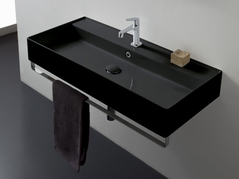 SCARABEO TEOREMA 2.0 5106/R-100A Раковина накладная или подвесная с одним отверстием под смеситель, с сливом - переливом. Настенные крепления и перелив входят в комплект. Размеры: 100x46x14,5h см. Цвет Night .
