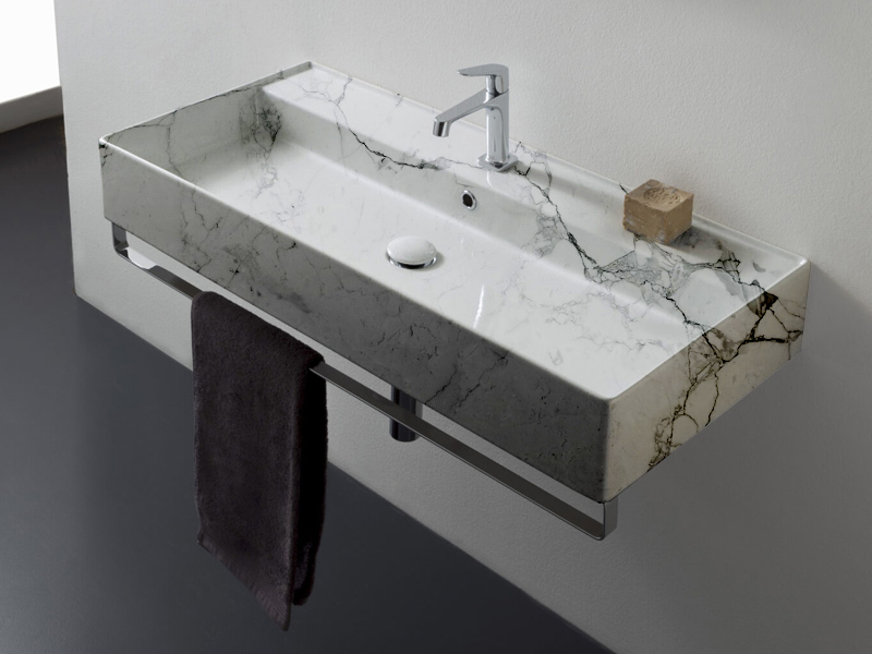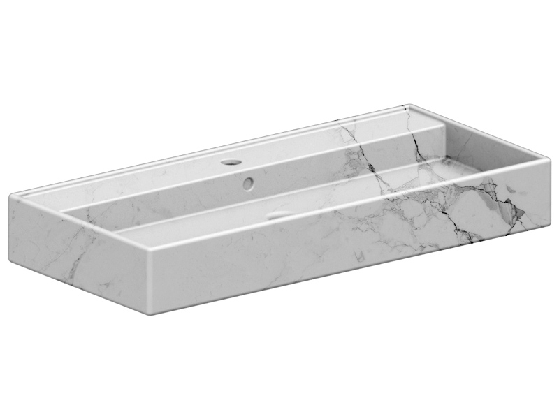 SCARABEO TEOREMA 2.0 5106/R-100A Раковина накладная или подвесная с одним отверстием под смеситель, с сливом - переливом. Настенные крепления и перелив входят в комплект. Размеры: 100x46x14,5h см. Цвет Marble White.