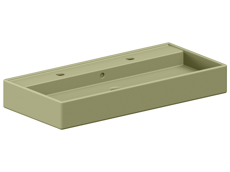 SCARABEO TEOREMA 2.0 5106/R-100В Раковина накладная или подвесная с двумя отверстиями под смеситель, с сливом - переливом. Настенные крепления и перелив входят в комплект.Размеры: 100x46x14,5h см. Цвет Matt Lime.