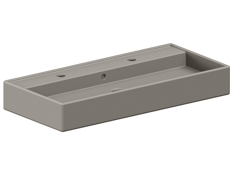 SCARABEO TEOREMA 2.0 5106/R-100В Раковина накладная или подвесная с двумя отверстиями под смеситель, с сливом - переливом. Настенные крепления и перелив входят в комплект.Размеры: 100x46x14,5h см. Цвет Glossy Sand. .