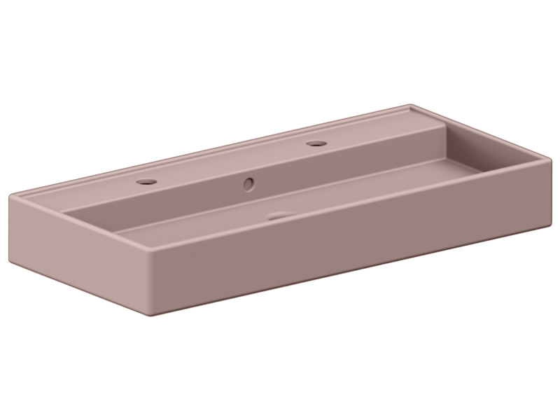 SCARABEO TEOREMA 2.0 5106/R-100В Раковина накладная или подвесная с двумя отверстиями под смеситель, с сливом - переливом. Настенные крепления и перелив входят в комплект.Размеры: 100x46x14,5h см. Цвет Glossy Antique pink.