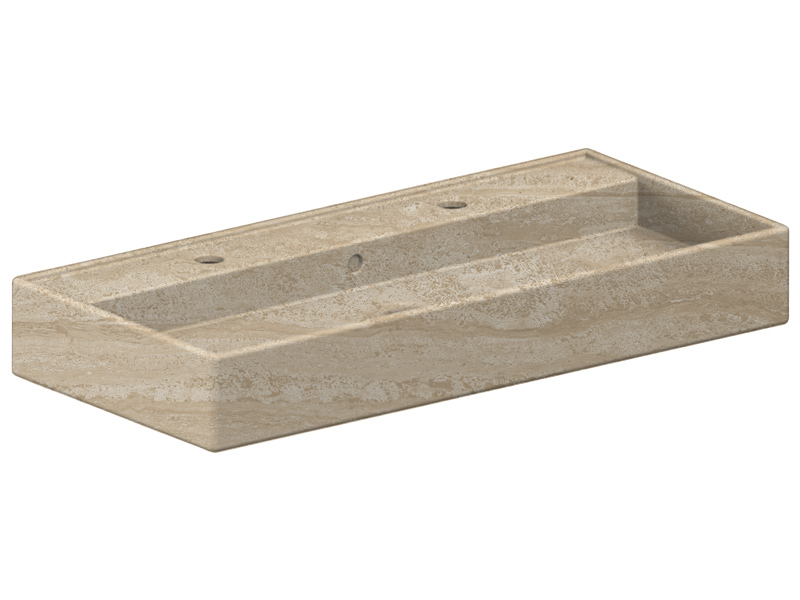 SCARABEO TEOREMA 2.0 5106/R-100В Раковина накладная или подвесная с двумя отверстиями под смеситель, с сливом - переливом. Настенные крепления и перелив входят в комплект.Размеры: 100x46x14,5h см. Цвет Travertine.