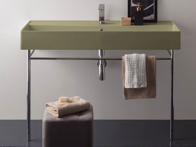 SCARABEO TEOREMA 2.0 5107/R-120A Раковина накладная или подвесная с одним отверстием под смеситель, с сливом - переливом. Настенные крепления и перелив входят в комплект. Размеры: 120x46x14,5h см Цвет Matt lime.