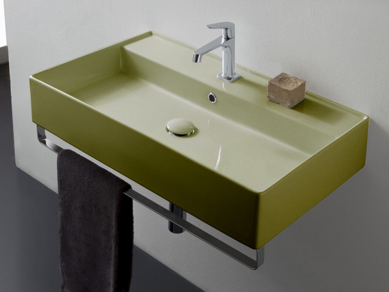 SCARABEO TEOREMA 2.0 5110 Раковина накладная или подвесная с одним отверстием под смеситель, с сливом - переливом. Настенные крепления и перелив входят в комплект. Размеры: 80x46x14,5h см. Цвет Glossy lime.