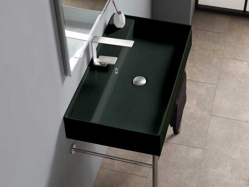 SCARABEO TEOREMA 2.0 5110 Раковина накладная или подвесная с одним отверстием под смеситель, с сливом - переливом. Размеры: 80x46x14,5h см. Настенные крепления входят в комплект. Цвет Ardesia.