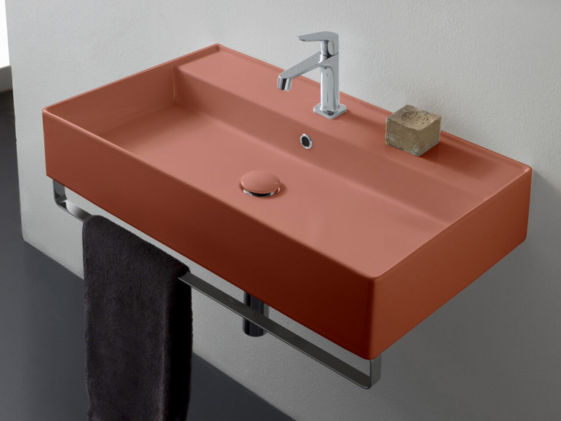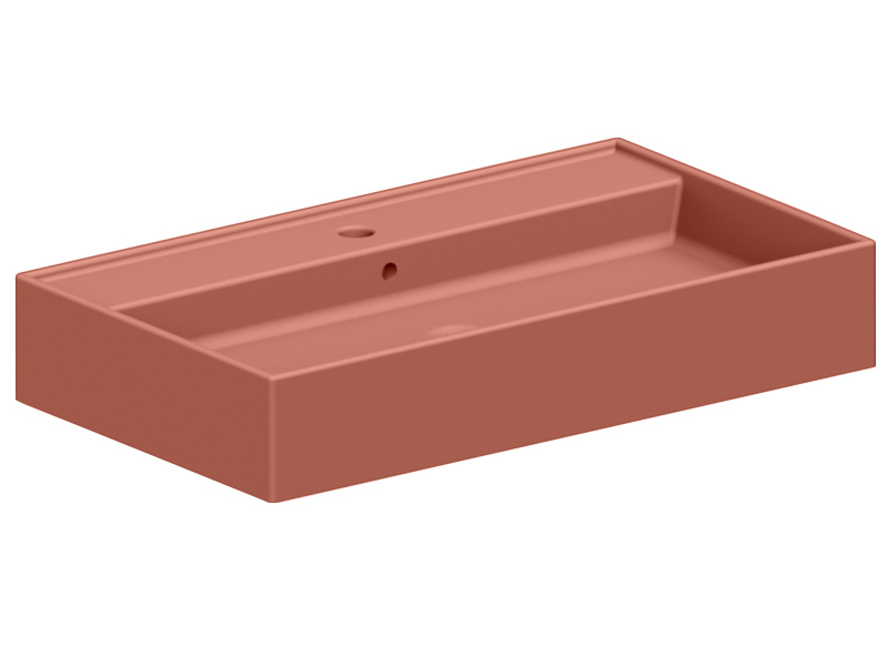 SCARABEO TEOREMA 2.0 5110 Раковина накладная или подвесная с одним отверстием под смеситель, с сливом - переливом. Настенные крепления и перелив входят в комплект. Размеры: 80x46x14,5h см. Цвет Matt Peach.