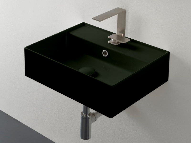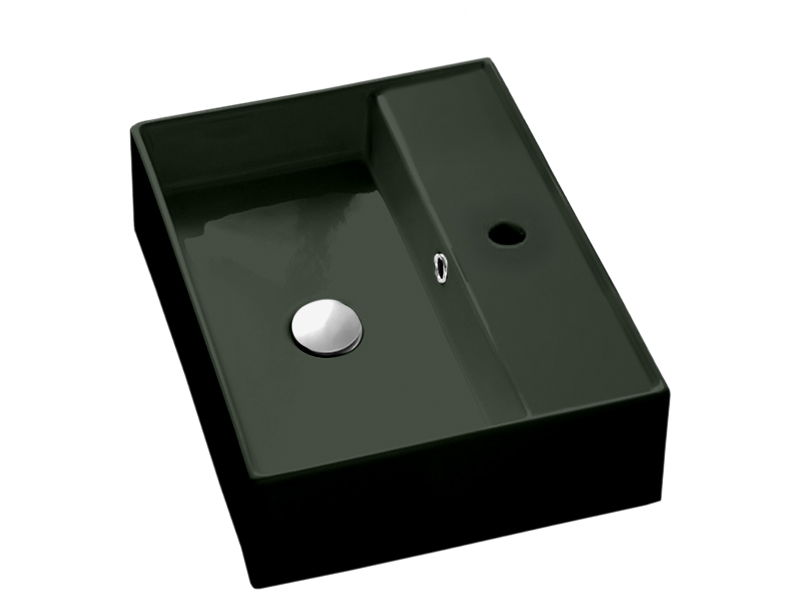 SCARABEO TEOREMA 2.0 5111 Раковина накладная или подвесная с одним отверстием под смеситель, с сливом - переливом. Размеры: 50,5x38,5x14h см. Настенные крепления входят в комплект. Цвет Ardesia.