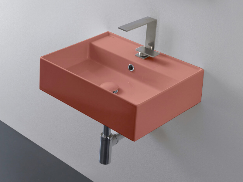 SCARABEO TEOREMA 2.0 5111 Раковина накладная или подвесная с одним отверстием под смеситель, с сливом - переливом. Настенные крепления и перелив входят в комплект. Размеры: 50,5x38,5x14h см. Цвет Matt Peach.