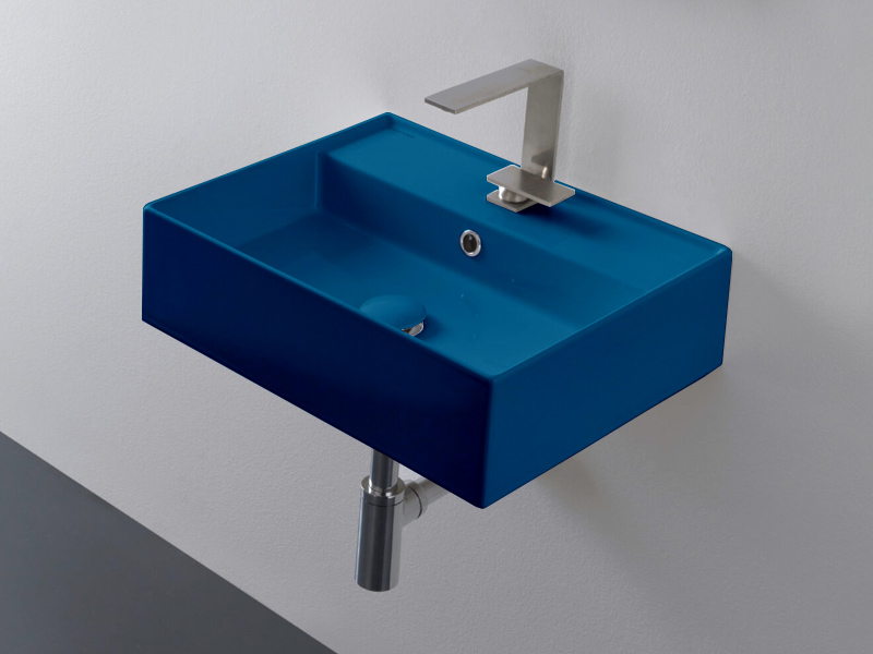 SCARABEO TEOREMA 2.0 5111 Раковина накладная или подвесная с одним отверстием под смеситель, с сливом - переливом. Настенные крепления и перелив входят в комплект. Размеры: 50,5x38,5x14h см. Цвет Glossy Ocean.