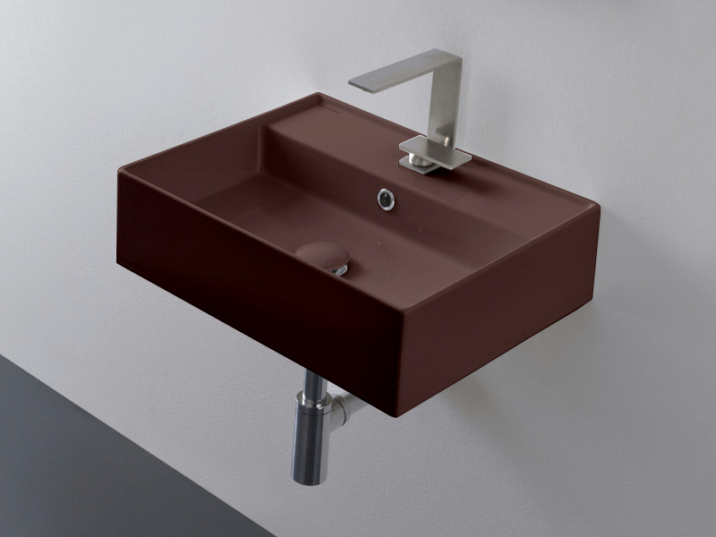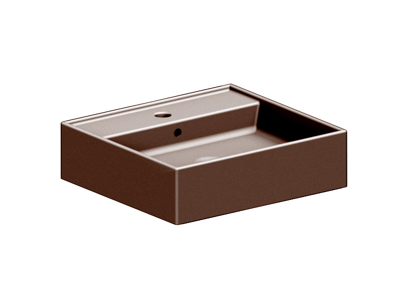 SCARABEO TEOREMA 2.0 5111 Раковина накладная или подвесная с одним отверстием под смеситель, с сливом - переливом. Настенные крепления и перелив входят в комплект. Размеры: 50,5x38,5x14h см. Цвет Glossy Tobacco.