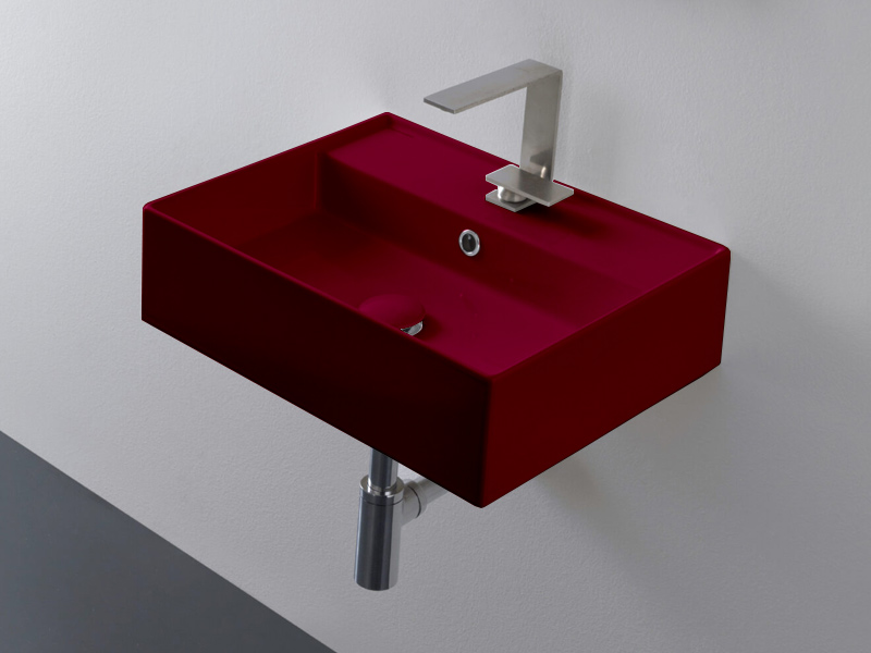 SCARABEO TEOREMA 2.0 5111 Раковина накладная или подвесная с одним отверстием под смеситель, с сливом - переливом. Настенные крепления и перелив входят в комплект. Размеры: 50,5x38,5x14h см. Цвет Cherry.