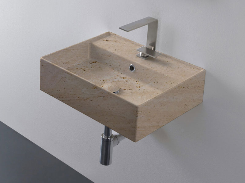 SCARABEO TEOREMA 2.0 5111 Раковина накладная или подвесная с одним отверстием под смеситель, с сливом - переливом. Настенные крепления и перелив входят в комплект. Размеры: 50,5x38,5x14h см. Цвет Travertine .