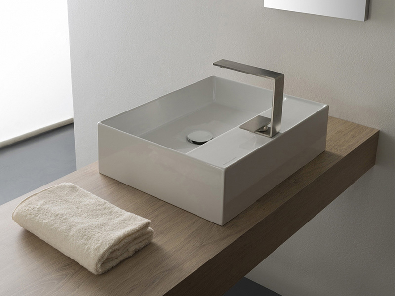 SCARABEO TEOREMA 2.0 5112 Раковина накладная с одним отверстием под смеситель, с сливом - переливом. Размеры: 50,5x38,5x14h см. Все стороны покрыты эмалью , рекомендуется установка на столешницу. Цвет White.