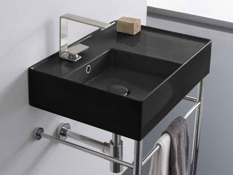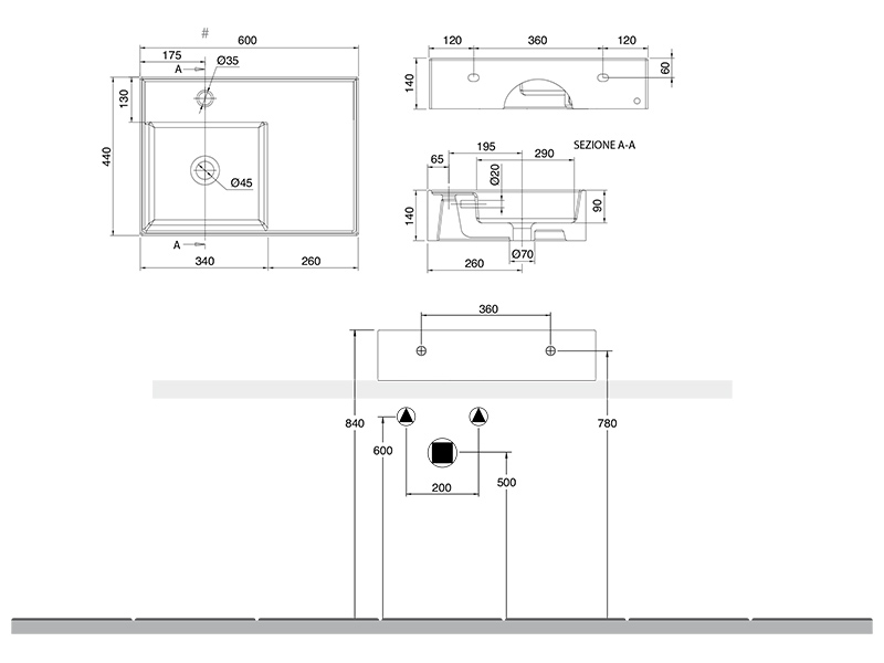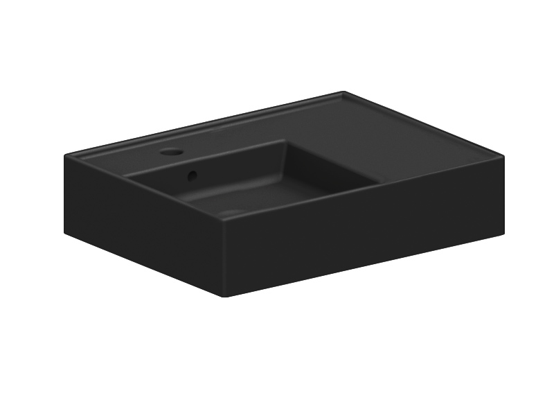SCARABEO TEOREMA 2.0 5114 Раковина накладная или подвесная чаша слева с одним отверстием под смеситель, с сливом - переливом. Настенные крепления и перелив входят в комплект. Размеры: 60x44x14h см. Цвет Night.