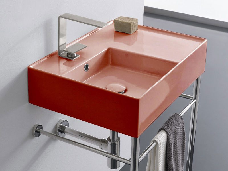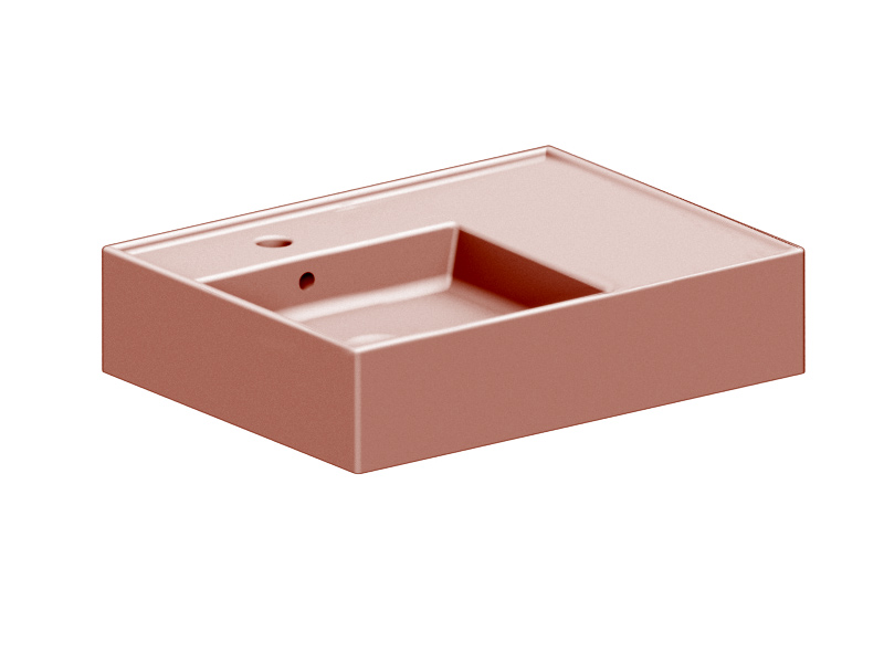 SCARABEO TEOREMA 2.0 5114 Раковина накладная или подвесная чаша слева с одним отверстием под смеситель, с сливом - переливом. Настенные крепления и перелив входят в комплект. Размеры: 60x44x14h см. Цвет Glossy Peach.