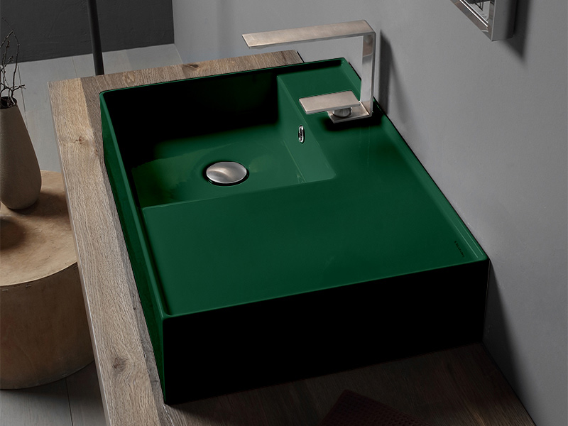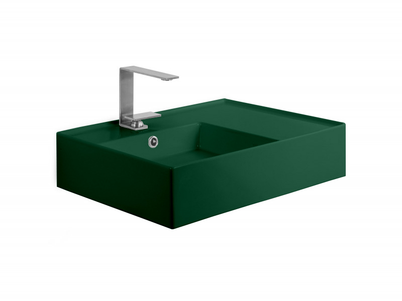 SCARABEO TEOREMA 2.0 5114 Раковина накладная или подвесная чаша слева с одним отверстием под смеситель, с сливом - переливом. Размеры: 60x44x14h см. Настенные крепления входят в комплект. Цвет Musk.