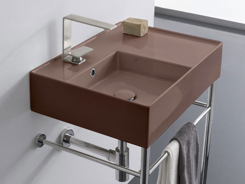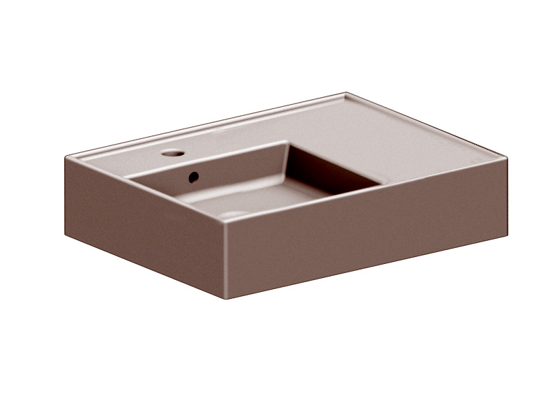 SCARABEO TEOREMA 2.0 5114 Раковина накладная или подвесная чаша слева с одним отверстием под смеситель, с сливом - переливом. Настенные крепления и перелив входят в комплект. Размеры: 60x44x14h см. Цвет Glossy Tobacco.