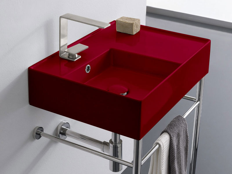 SCARABEO TEOREMA 2.0 5114 Раковина накладная или подвесная чаша слева с одним отверстием под смеситель, с сливом - переливом. Настенные крепления и перелив входят в комплект. Размеры: 60x44x14h см. Цвет Cherry.